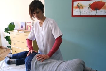 Après observation de la posture debout, j’examine le patient avec des tests de mobilité assis et allongé, afin de trouver les zones de tensions et de blocages tissulaires à l’origine du symptôme.